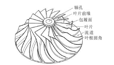 整體葉輪是離心式空氣壓縮機中的核心零件,其作用是將電動機的機械能轉化為空氣動能,提高輸出空氣的壓力。整體葉輪結構復雜,加工難度大,尤其是加工葉片和流道時,容易產生干涉,流道寬度比較小,無法使用大直徑刀具,加工效率低。